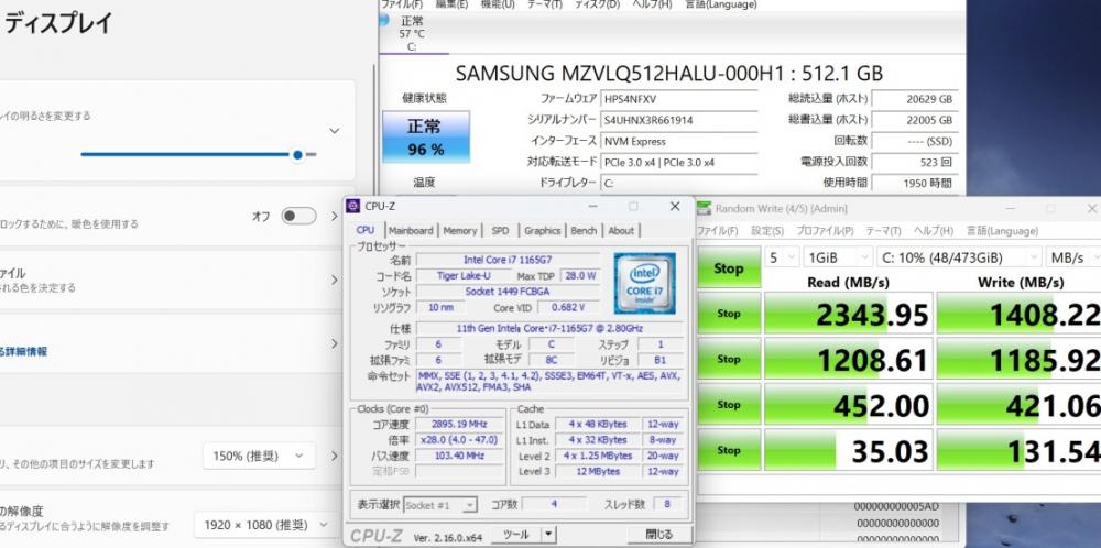 | CPU: 超高速 Intel 卓越性能 第11世代Core i7-1165G7 2.8Ghz、 4コア8スレッド (ターボ・ブースト利用時の最大周波数 4.7GHz) |