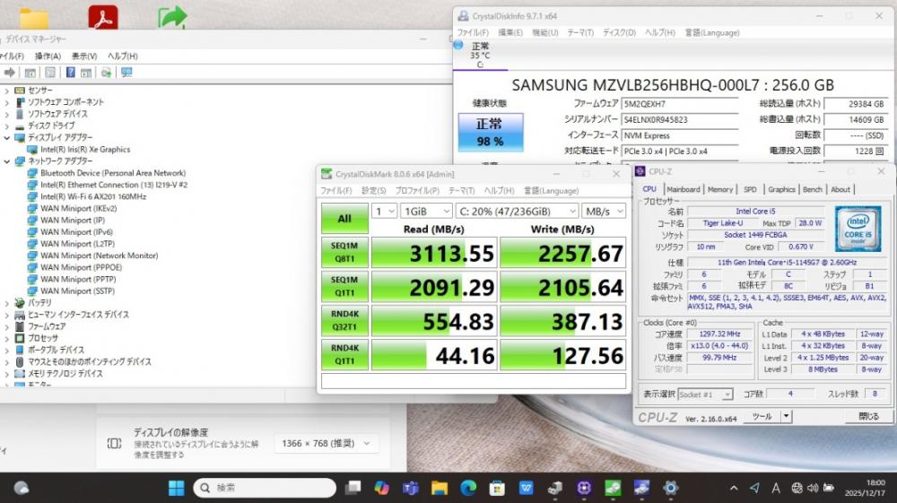 CPU:    超高速 Intel 卓越性能 第11世代Core i5-1145G7 2.6Ghz、 4コア8スレッド (ターボ・ブースト利用時の最大周波数 4.4GHz)