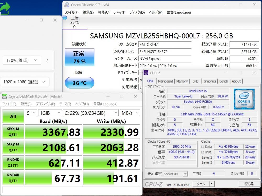 | CPU: 超高速 Intel 卓越性能 第11世代Core i5-1145G7 2.6Ghz、 4コア8スレッド (ターボ・ブースト利用時の最大周波数 4.4GHz) |