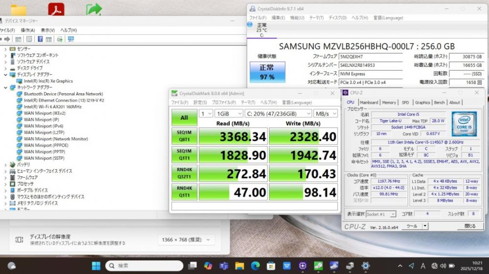 | CPU: 超高速 Intel 卓越性能 第11世代Core i5-1145G7 2.6Ghz、 4コア8スレッド (ターボ・ブースト利用時の最大周波数 4.4GHz) |