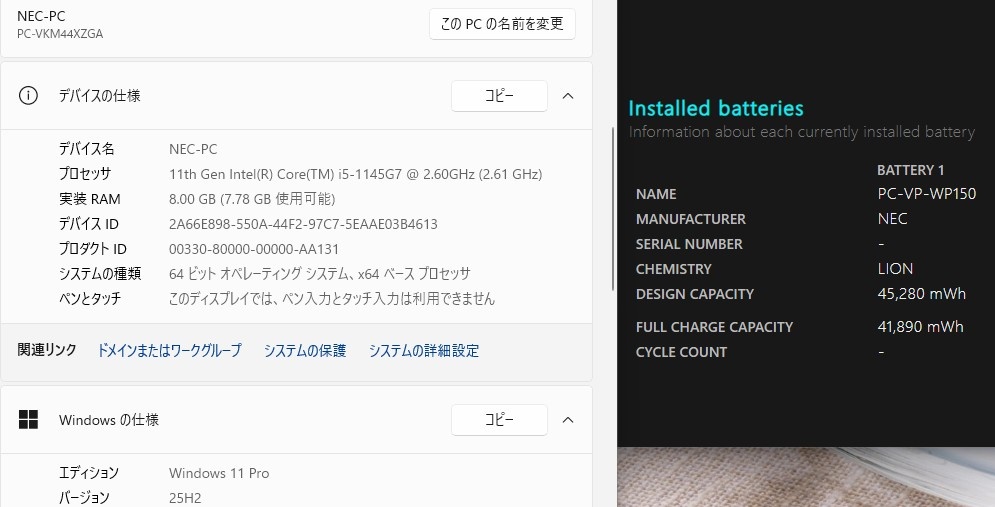 | プロダクトシール: Win11 Pro シールがあります。 |