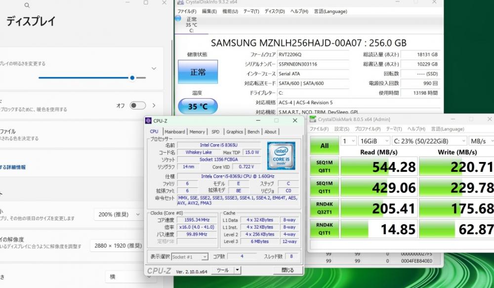 | CPU: 超高速 Intel 高性能 第8世代Core i5-8365u 1.6Ghz、 4コア8スレッド (ターボ・ブースト利用時の最大周波数 4.1GHz) |