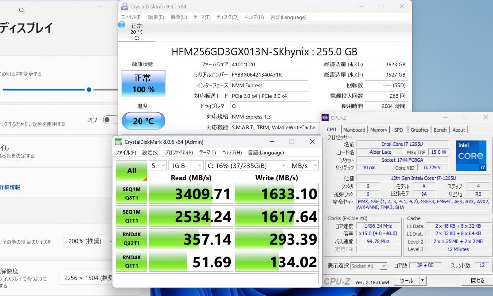 | CPU: 超高速 Intel 10コア 卓越性能 第12世代Core i7-1265U 1.8Ghz、 10コア12スレッド (ターボ・ブースト利用時の最大周波数 4.8GHz) |