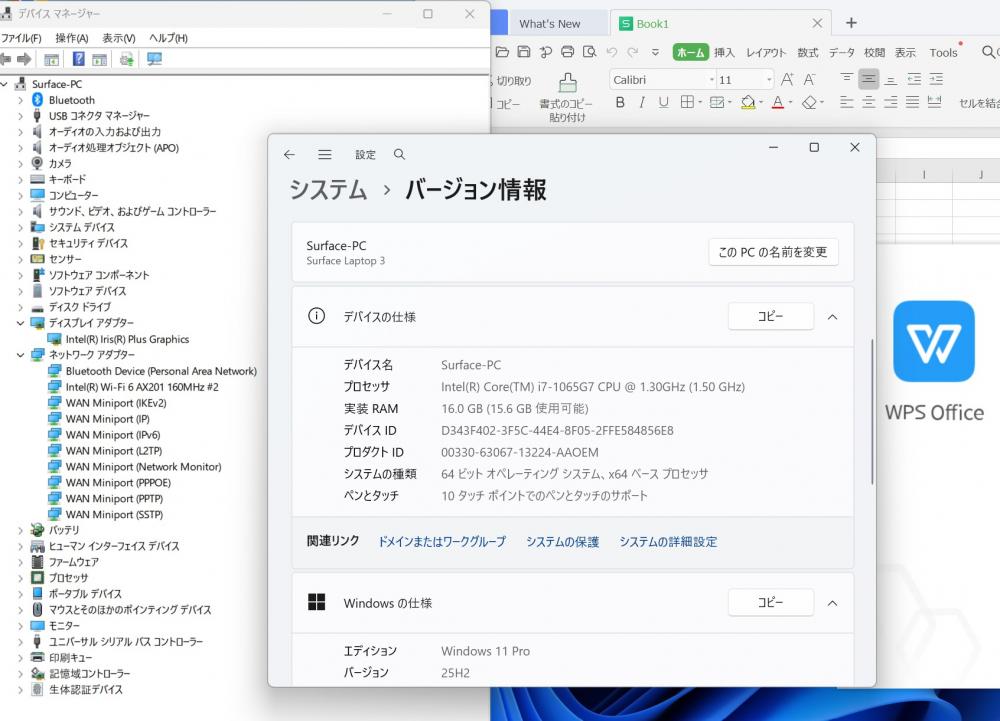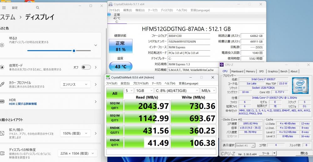 | CPU: 超高速 Intel 超高性能 第10世代Core i7-1065G7 1.3Ghz、 4コア8スレッド (ターボ・ブースト利用時の最大周波数 3.9GHz) |