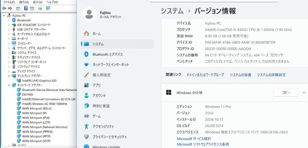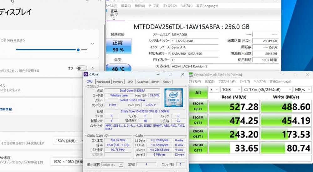 | CPU: 超高速 Intel 高性能 第8世代Core i5-8365u 1.6Ghz、 4コア8スレッド (ターボ・ブースト利用時の最大周波数 4.1GHz) |