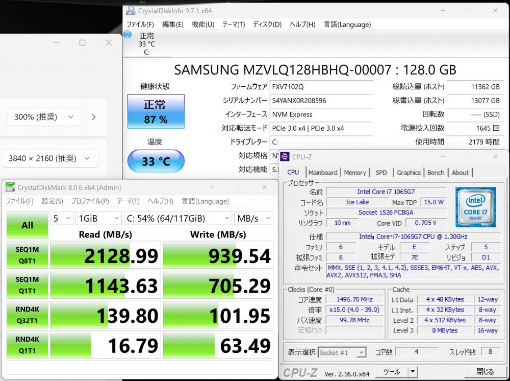 | CPU: 超高速 Intel 超高性能 第10世代Core i7-1065G7 1.3Ghz、 4コア8スレッド (ターボ・ブースト利用時の最大周波数 3.9GHz) |