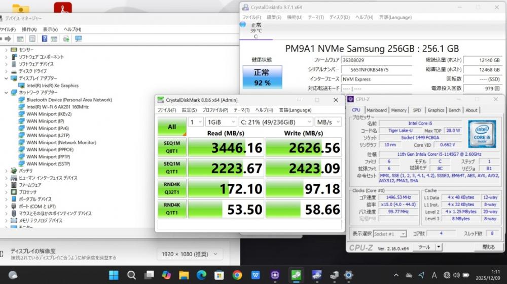 | CPU: 超高速 Intel 卓越性能 第11世代Core i5-1145G7 2.6Ghz、 4コア8スレッド (ターボ・ブースト利用時の最大周波数 4.4GHz) |