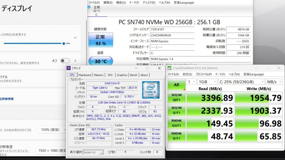 CPU:    超高速 Intel 卓越性能 第11世代Core i5-1145G7 2.6Ghz、 4コア8スレッド (ターボ・ブースト利用時の最大周波数 4.4GHz)