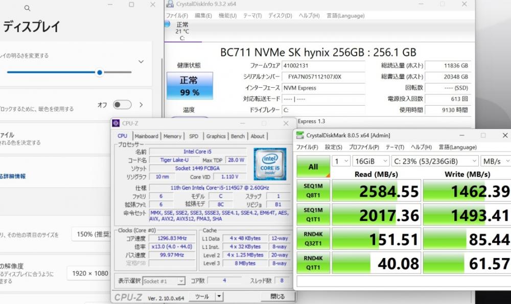 | CPU: 超高速 Intel 卓越性能 第11世代Core i5-1145G7 2.6Ghz、 4コア8スレッド (ターボ・ブースト利用時の最大周波数 4.4GHz) |