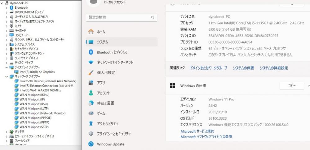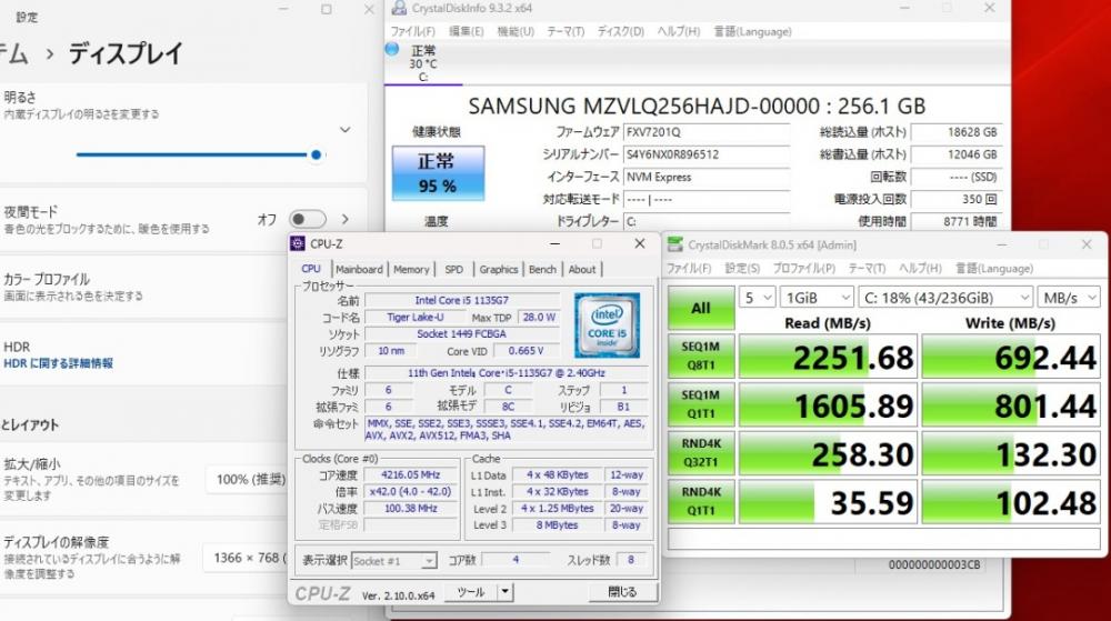 | CPU: 超高速 Intel 卓越性能 第11世代Core i5-1135G7 2.4Ghz、 4コア8スレッド (ターボ・ブースト利用時の最大周波数 4.2GHz) |