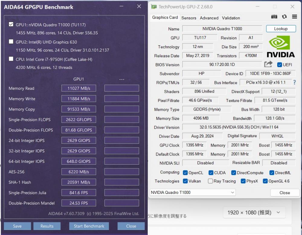 | ディスプレイ: フルHD 15.6インチ高輝度 広視野角 LEDバックライト 1920 x 1080解像度 グラフィックス NVIDIA Quadro T1000 搭載、大容量 4096M専用ビデオメモリーvRAM 快適使用体験! 専門向けのグラフィックスですが、ゲーミング性能にも、GTX 1050Ti < Quadro T1000 < GTX 780 |