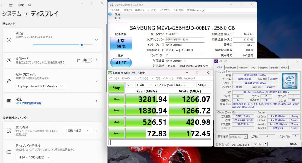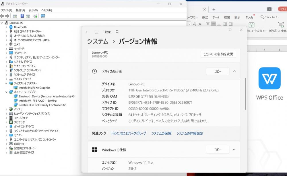 | CPU: 超高速 Intel 卓越性能 第11世代Core i5-1135G7 2.4Ghz、 4コア8スレッド (ターボ・ブースト利用時の最大周波数 4.2GHz) |