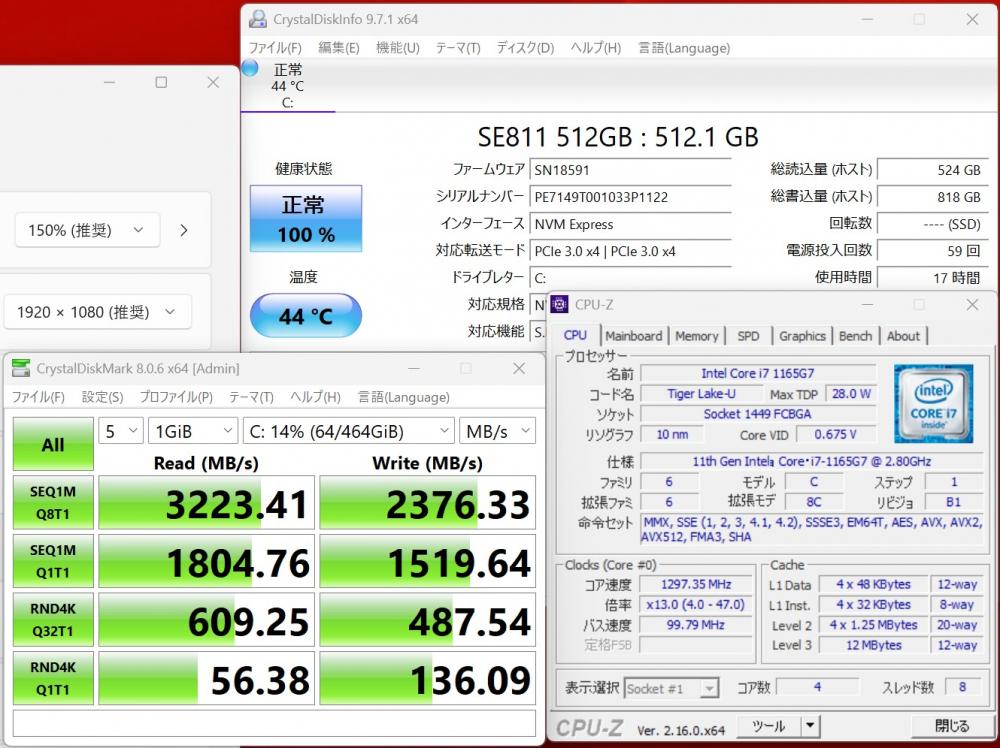 | CPU: 卓越性能 第11世代Core i7-1165G7 2.8Ghz、 4コア8スレッド (ターボ・ブースト利用時の最大周波数 4.7GHz) |
