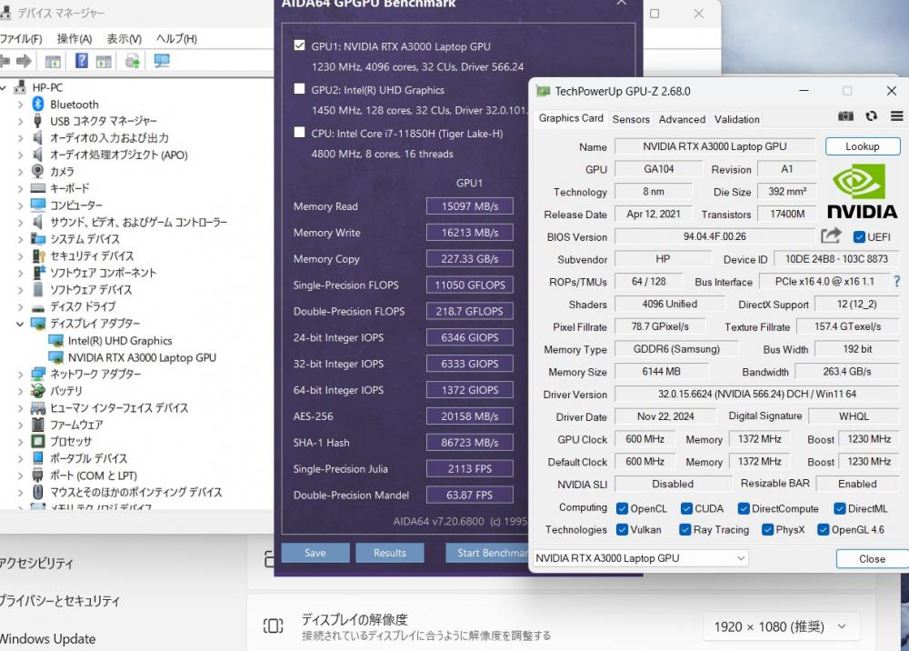 | ディスプレイ: フルHD 15.6インチ高輝度 広視野角 LEDバックライト 1920 x 1080解像度 グラフィックス NVIDIA RTX A3000 Laptop 搭載、大容量 6G専用ビデオメモリーvRAM 快適使用体験! 専門向けのグラフィックスですが、ゲーミング性能にも、RTX A3000 (Mobile) = RTX 2060 |