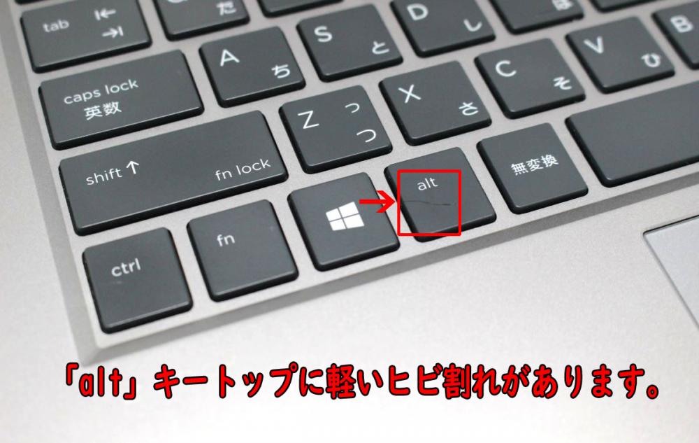 「alt」キートップに軽いヒビ割れがあります。(キーボード バックライト機能付き)