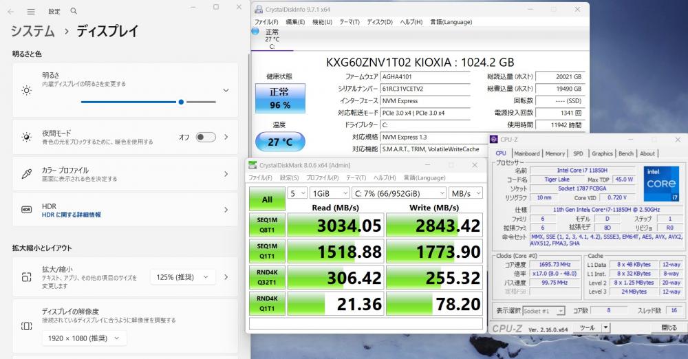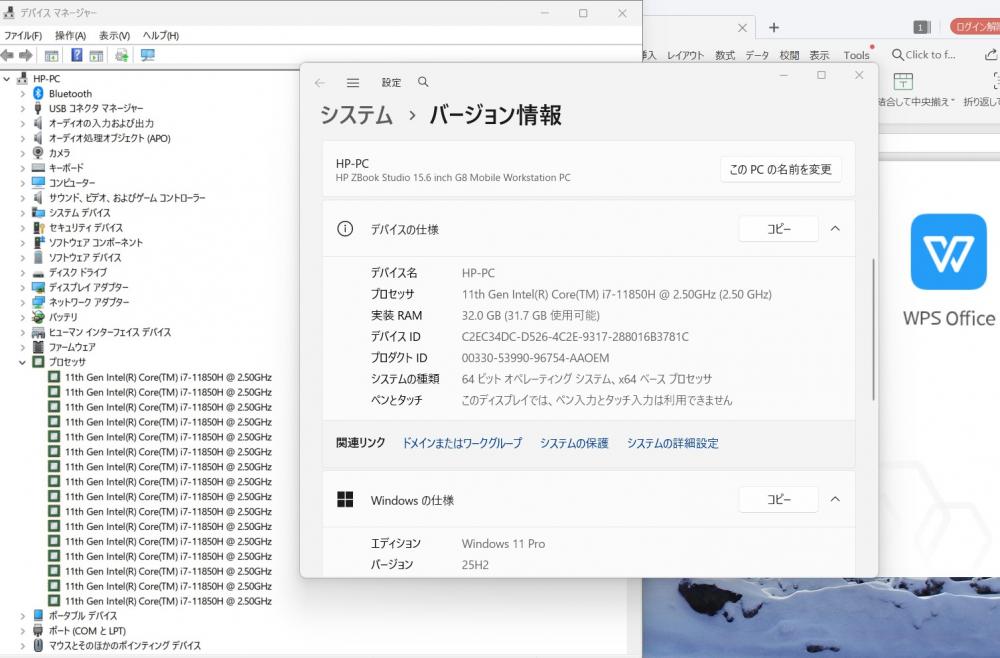 CPU:    超高速 Intel 8コア 卓越性能 第11世代Core i5-11850H 2.5Ghz、 8コア16スレッド (ターボ・ブースト利用時の最大周波数 4.8GHz)