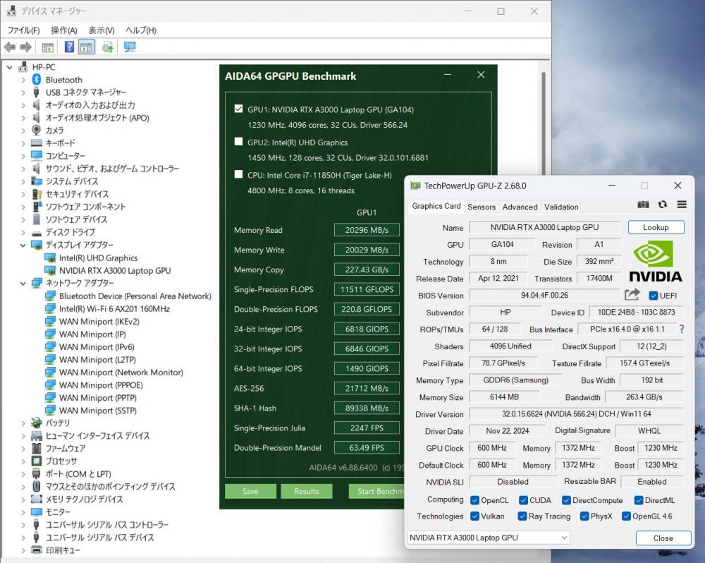 グラフィックス NVIDIA RTX A3000 Laptop 搭載、大容量 6G専用ビデオメモリーvRAM 快適使用体験!