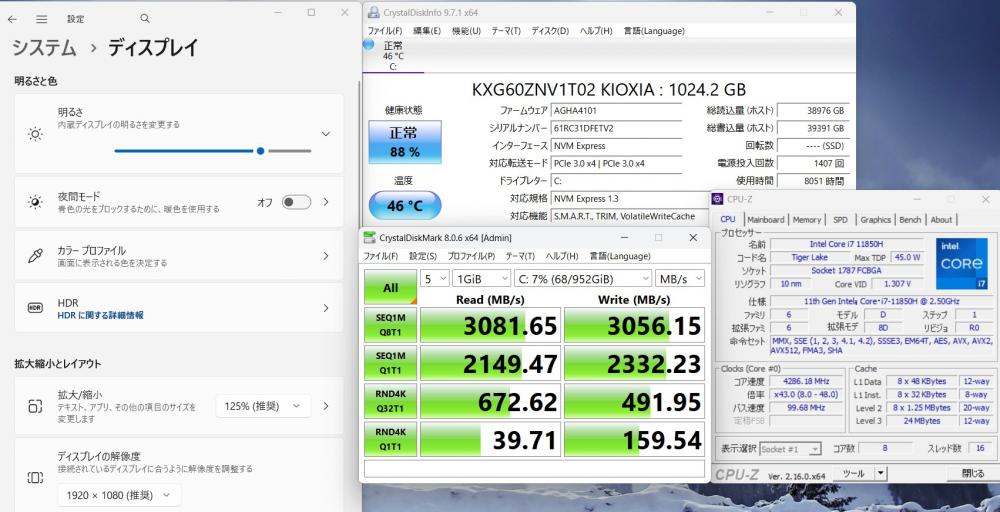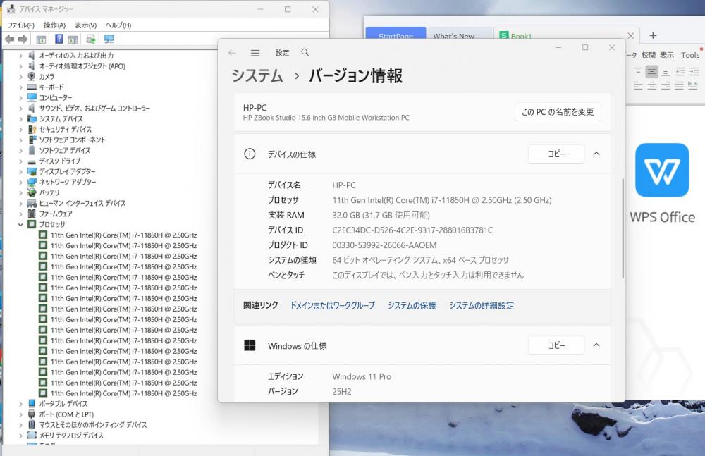 | CPU: 超高速 Intel 8コア 卓越性能 第11世代Core i5-11850H 2.5Ghz、 8コア16スレッド (ターボ・ブースト利用時の最大周波数 4.8GHz) |