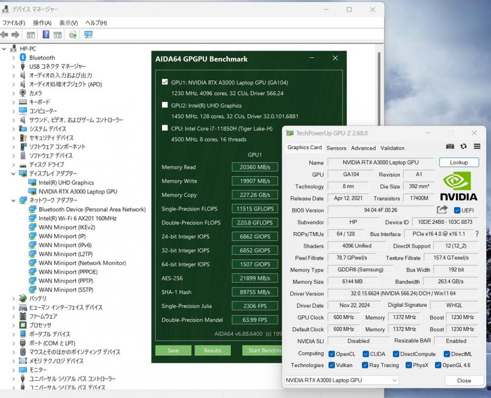 | ディスプレイ: フルHD 15.6インチ高輝度 広視野角 LEDバックライト 1920 x 1080解像度 グラフィックス NVIDIA RTX A3000 Laptop 搭載、大容量 6G専用ビデオメモリーvRAM 快適使用体験! 専門向けのグラフィックスですが、ゲーミング性能にも、RTX A3000 (Mobile) = RTX 2060 |
