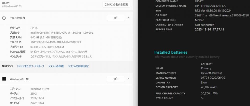 型番:     HP  ProBook 650G5