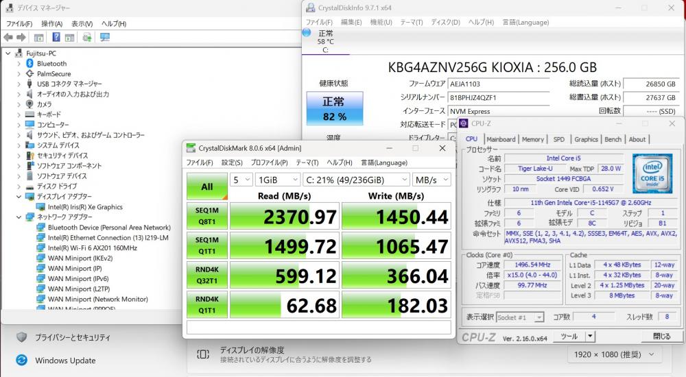 | CPU: 超高速 Intel 卓越性能 第11世代Core i5-1145G7 2.6Ghz、 4コア8スレッド (ターボ・ブースト利用時の最大周波数 4.4GHz) |