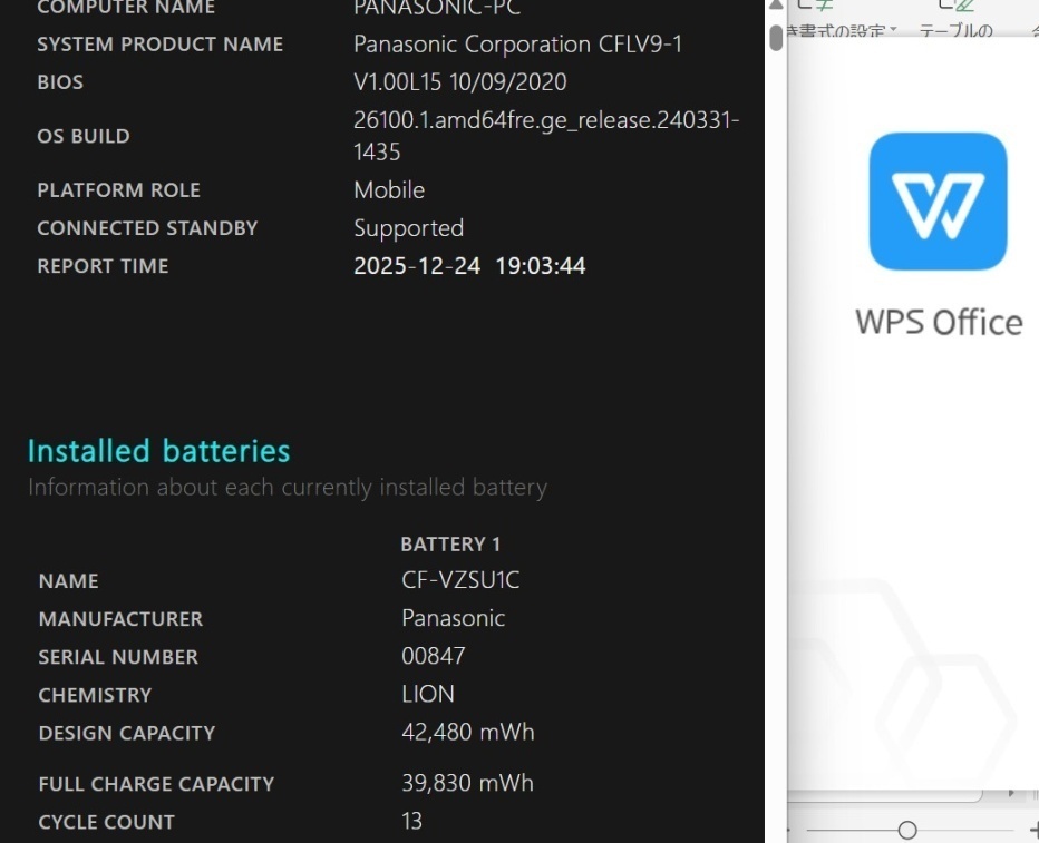 | 型番: Panasonic Let’s note CF-LV9RDHVS |