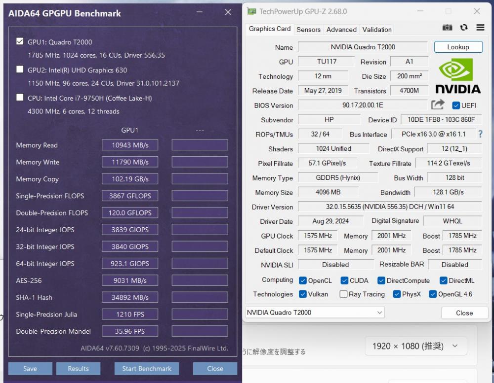 | ディスプレイ: フルHD 15.6インチ高輝度 広視野角 LEDバックライト 1920 x 1080解像度 グラフィックス NVIDIA Quadro T2000 搭載、大容量 4096M専用ビデオメモリーvRAM 快適使用体験! 専門向けのグラフィックスですが、ゲーミング性能にも、GTX 970 < Quadro T2000 < GTX 1060 |
