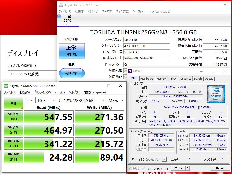 | CPU: 超高速 Intel 七世代Core i5-7300U 2.6Ghz、 (ターボ・ブースト利用時の最大周波数 3.5GHz) |