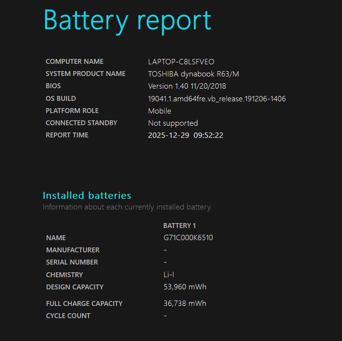 | 型番: TOSHIBA dynabook R63M |