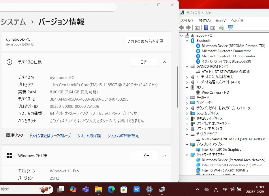 | 型番: TOSHIBA dynabook B65H シリーズ |