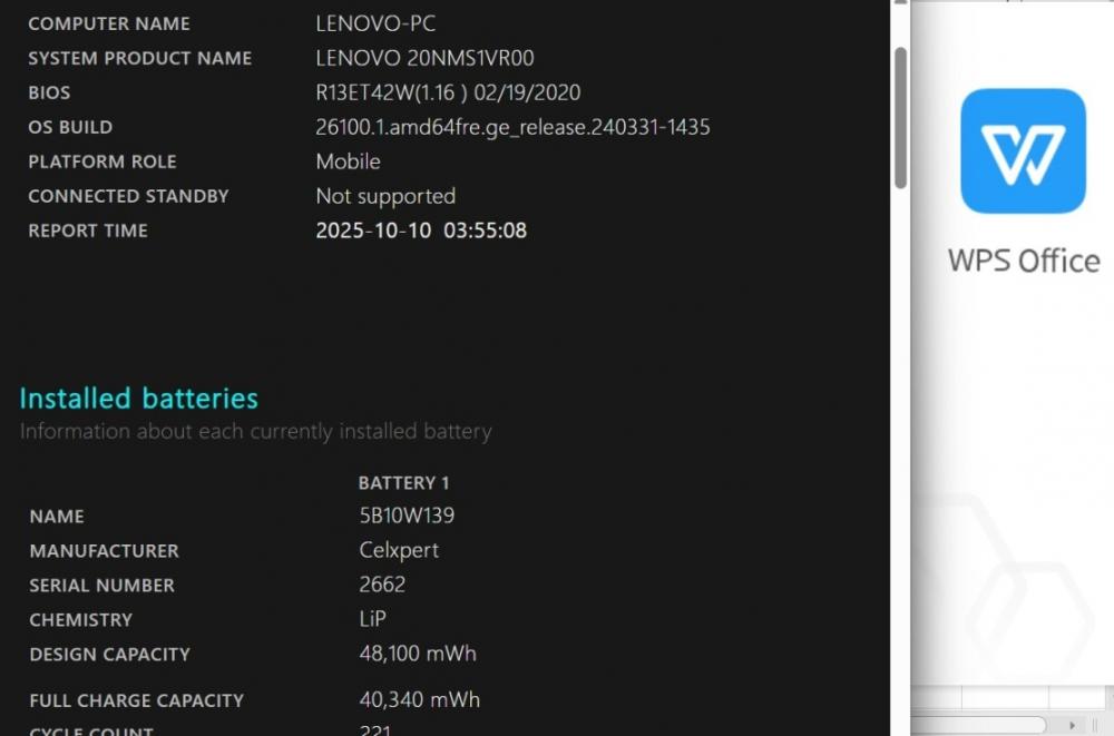バッテリー電池の健康度は 83% です。3時間位も使用可能と表示されている。 バッテリーは消耗品の為、動作補償外となります。