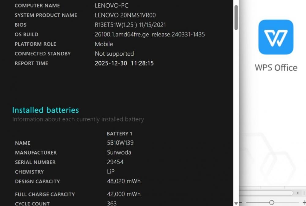 バッテリー電池の健康度は 87% です。3時間位も使用可能と表示されている。 バッテリーは消耗品の為、動作補償外となります。
