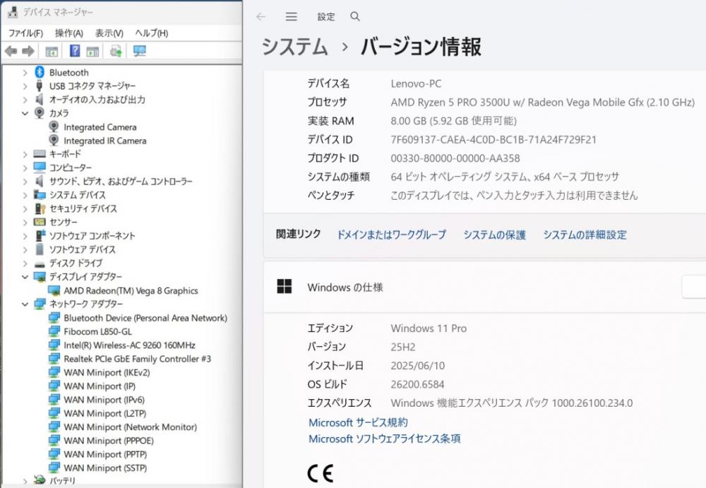 CPU:    超高速 高性能 AMD Ryzen 5-Pro 3500u 2.1Ghz、 4コア8スレッド (ターボ・ブースト利用時の最大周波数 3.7GHz)