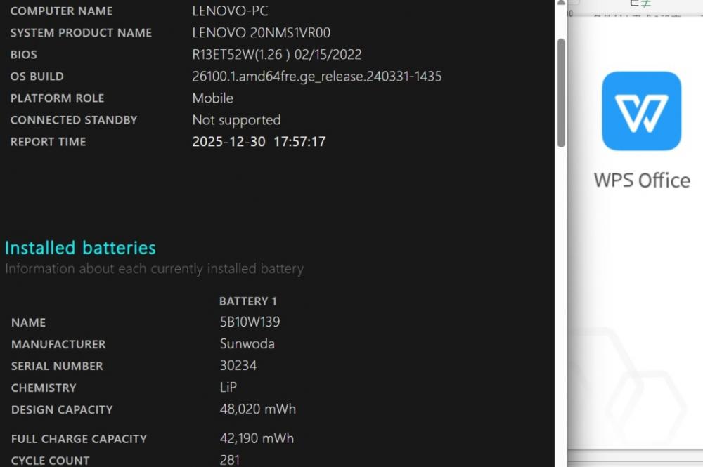 バッテリー電池の健康度は 87% です。3時間位も使用可能と表示されている。 バッテリーは消耗品の為、動作補償外となります。