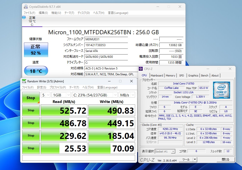| CPU: 超高速 Intel 高性能 第8世代Core i7-8700 3.2Ghz、 6コア12スレッド (ターボ・ブースト利用時の最大周波数 4.6GHz) |