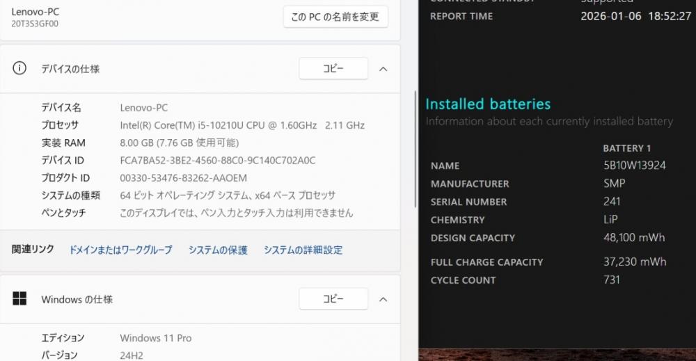 | 型番: Lenovo ThinkPad X13 Gen1 |
