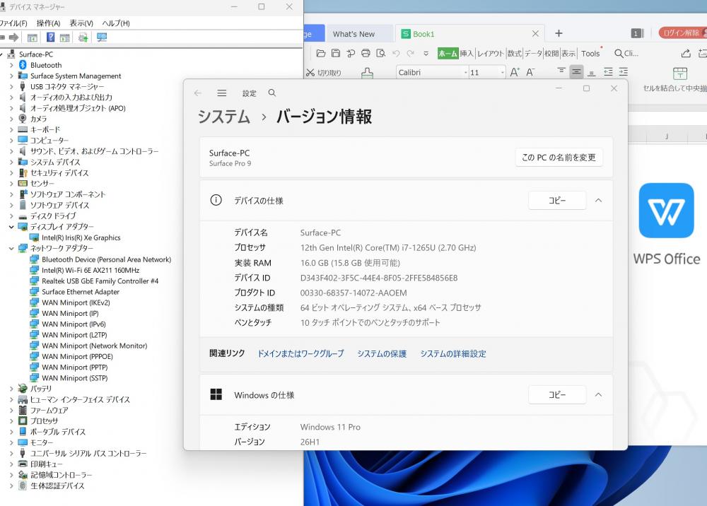 | 型番: マイクロソフト Surface Pro9 (Wi-Fi) |