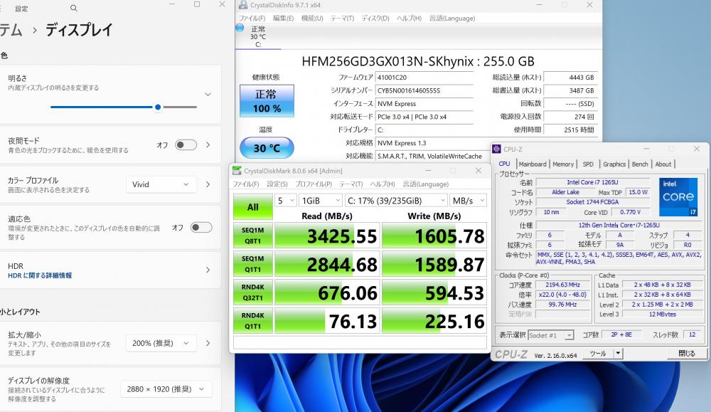 | CPU: 超高速 Intel 10コア 卓越性能 第12世代Core i7-1265u 1.8Ghz、 10コア12スレッド (ターボ・ブースト利用時の最大周波数 4.8GHz) |