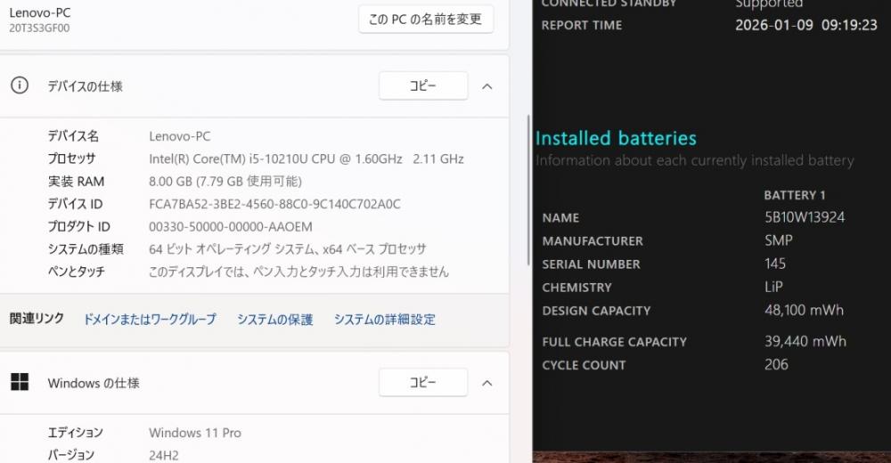 型番:     Lenovo  ThinkPad X13 Gen1