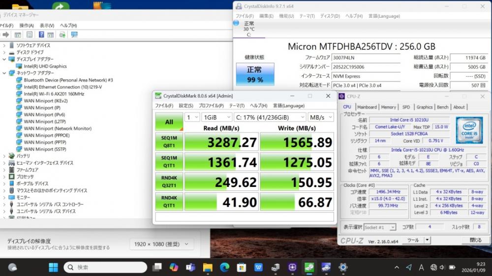 CPU:    超高速 Intel 超高性能 第10世代Core i5-10210u 1.6Ghz、 4コア8スレッド (ターボ・ブースト利用時の最大周波数 4.2GHz)