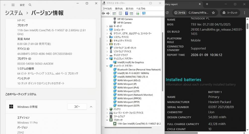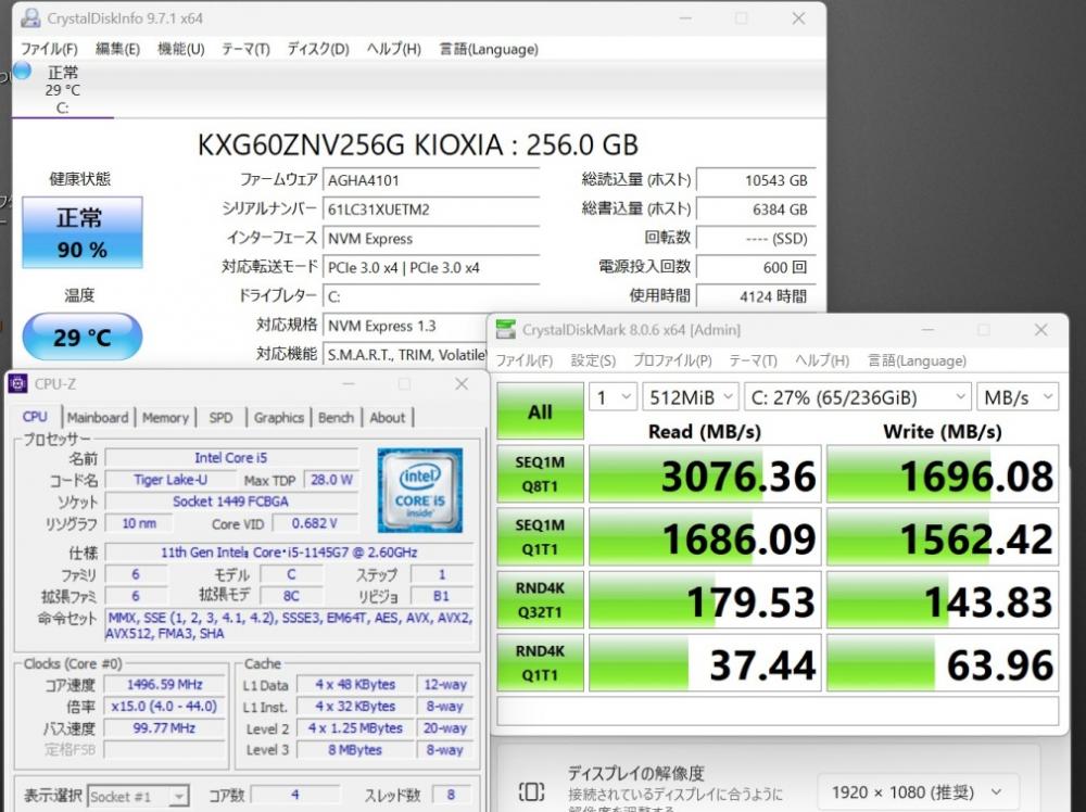 | CPU: 超高速 Intel 卓越性能 第11世代Core i5-1145G7 2.6Ghz、 4コア8スレッド (ターボ・ブースト利用時の最大周波数 4.4GHz) |