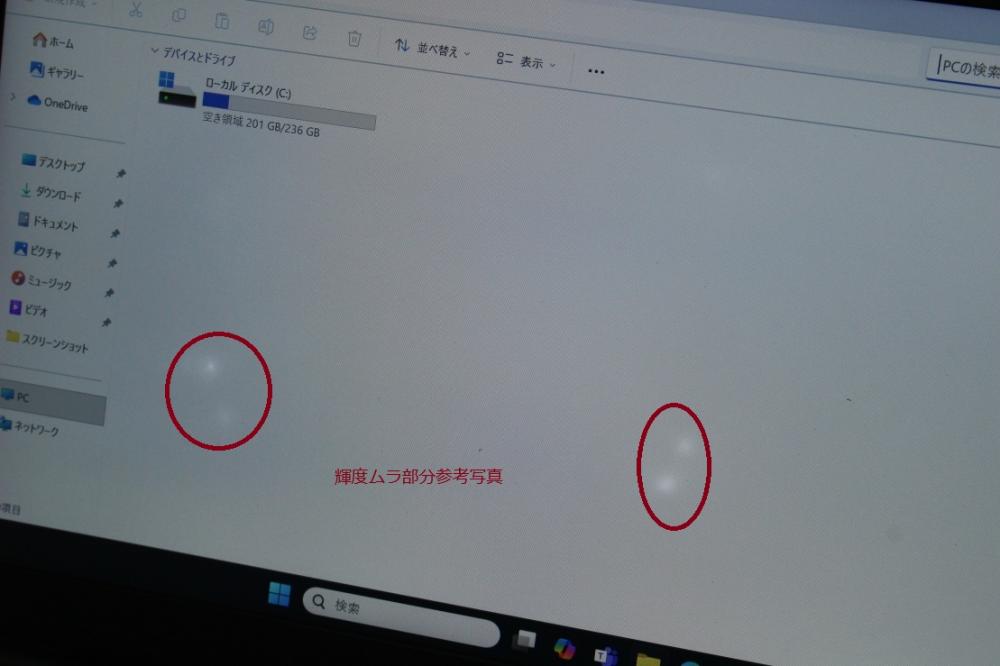 液晶軽いキーボード跡と写真映らない程度輝度ムラがあります。