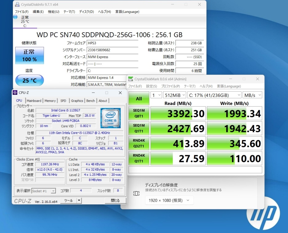 | CPU: 超高速 Intel 卓越性能 第11世代Core i5-1135G7 2.4Ghz、 4コア8スレッド (ターボ・ブースト利用時の最大周波数 4.2GHz) |