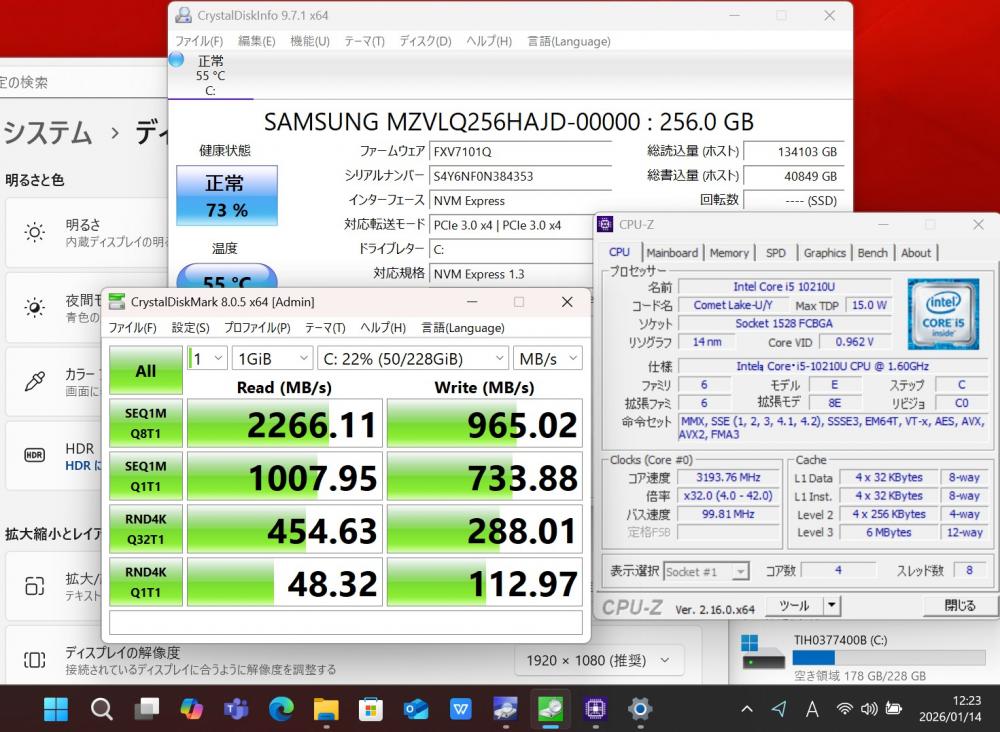 | CPU: 超高速 Intel 超高性能 第10世代Core i5-10210u 1.6Ghz、 4コア8スレッド (ターボ・ブースト利用時の最大周波数 4.2GHz) |