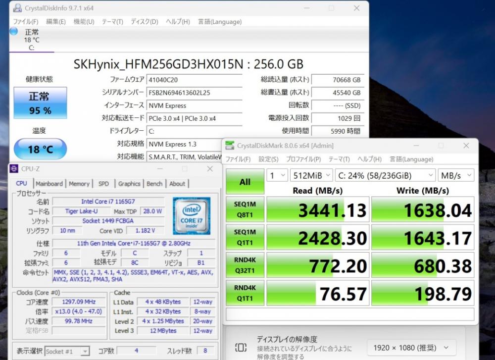 CPU:    超高速 Intel 卓越性能 第11世代Core i7-1165G7 2.8Ghz、 4コア8スレッド (ターボ・ブースト利用時の最大周波数 4.7GHz)