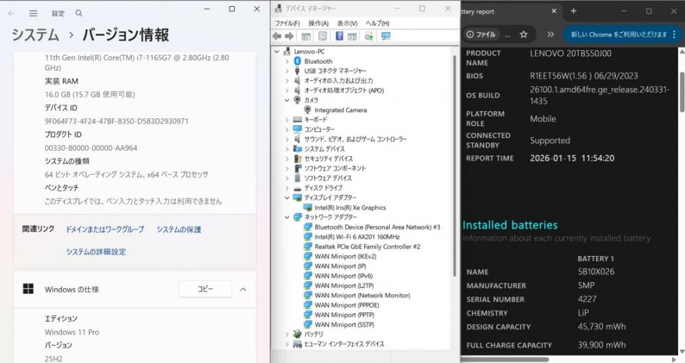 OS:      最新 Windows11 Pro 64bitアップグレード済み、Microsoft正規版 認証済み 安心使用。