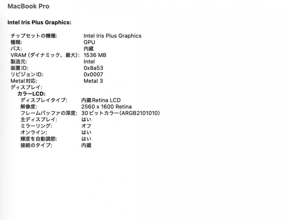 | 型番: Apple MacBook Pro A2251 (2020,TouchBar) グレー |