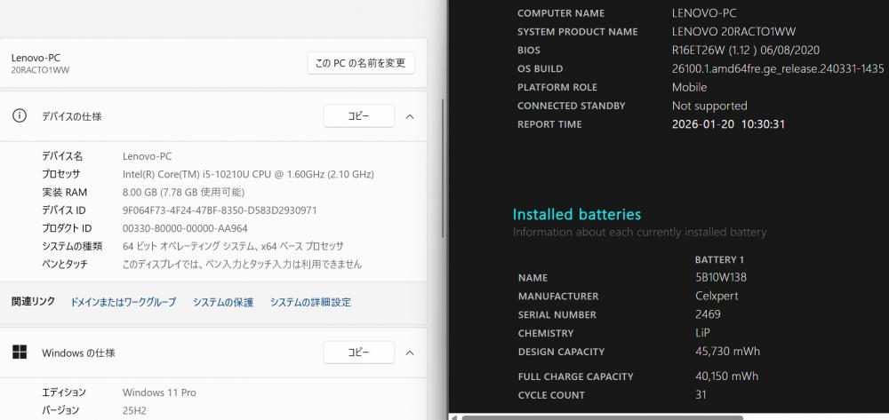 型番:     Lenovo  ThinkPad E14 Gen1