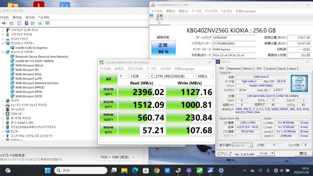 | CPU: 超高速 Intel 卓越性能 第11世代Core i5-1145G7 2.6Ghz、 4コア8スレッド (ターボ・ブースト利用時の最大周波数 4.4GHz) |