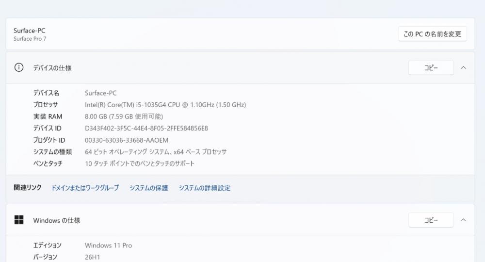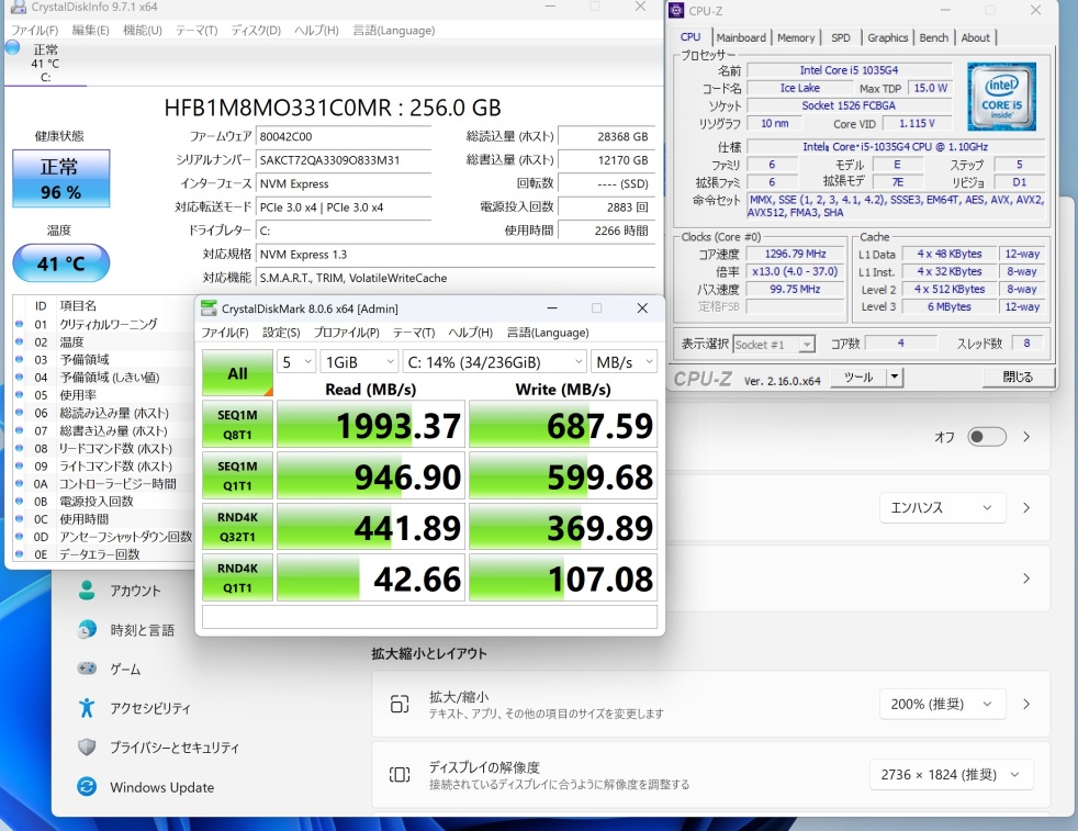 | CPU: 超高速 Intel 超高性能 第10世代Core i5-1035G4 1.1Ghz、 4コア8スレッド (ターボ・ブースト利用時の最大周波数 3.7GHz) |